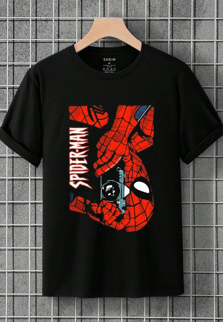 We use DTG Technology to print Marvel Spider-Man Camera Photo T shirt.