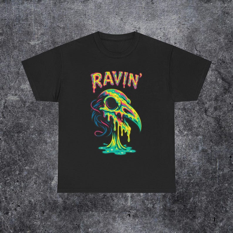 We use DTG Technology to print Psychedelic Weirdcore Raven Tee.
